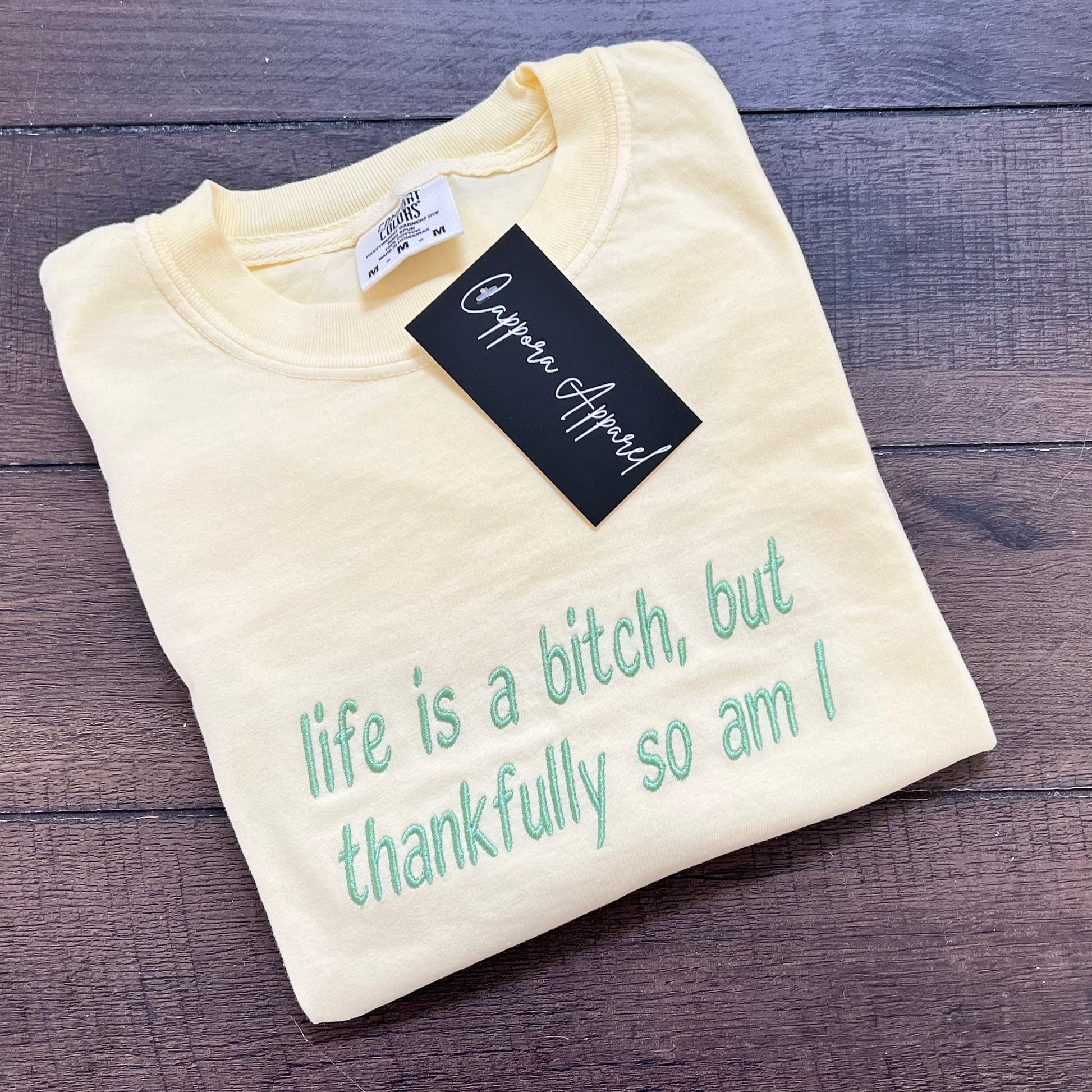 Embroidered Life is a Bitch T-Shirt | Comfort Colors Tee | Funny Graphic Embroidery Shirt for Women | Bold Statement Streetwear